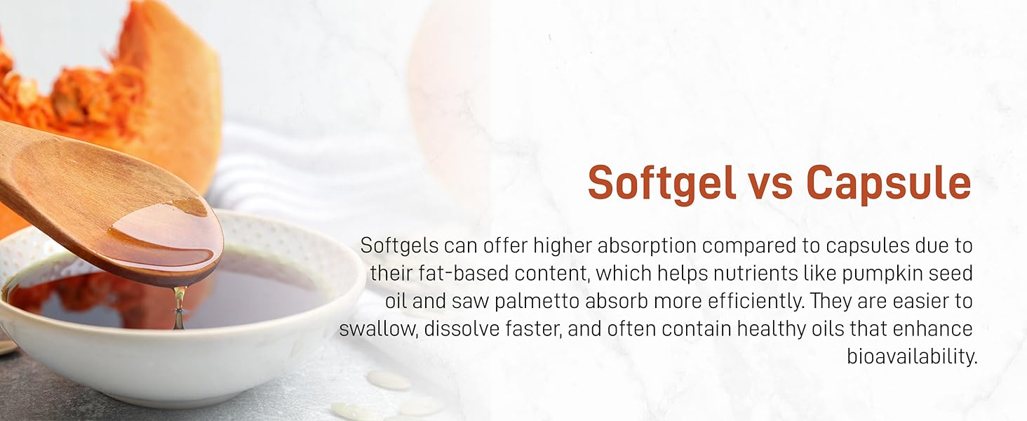 Each pouch offers 300 softgels with a 3 softgel serving size, contains 3,000mg pumpkin seed oil with 75mg saw palmetto oil and provides up to a 100-day supply.
